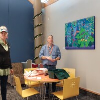 In December, art administrator Colin Thompson and art programmer Shannon Holmes reinstalled artworks from the CALS Permanent Collection at the McMath Library after McMath’s renovations were finished.